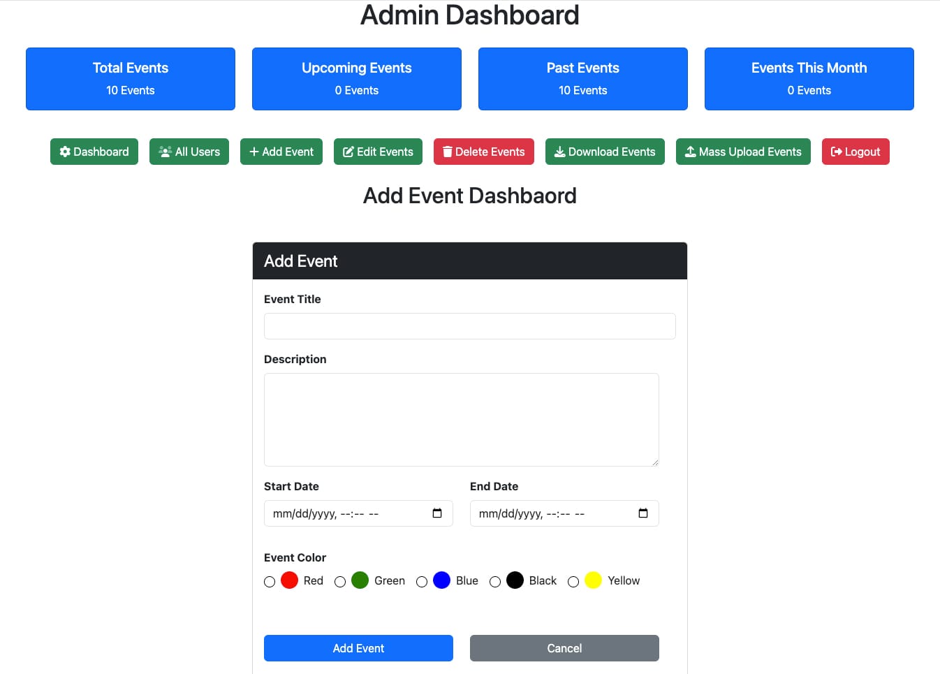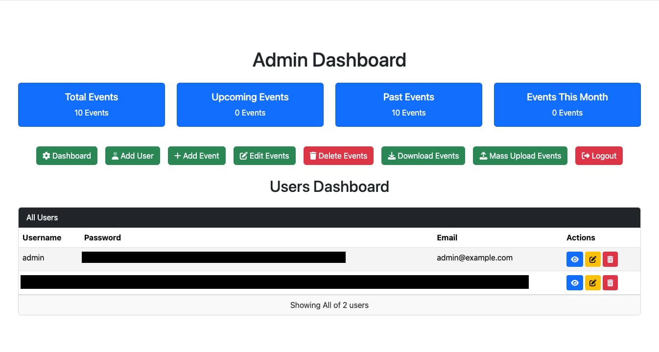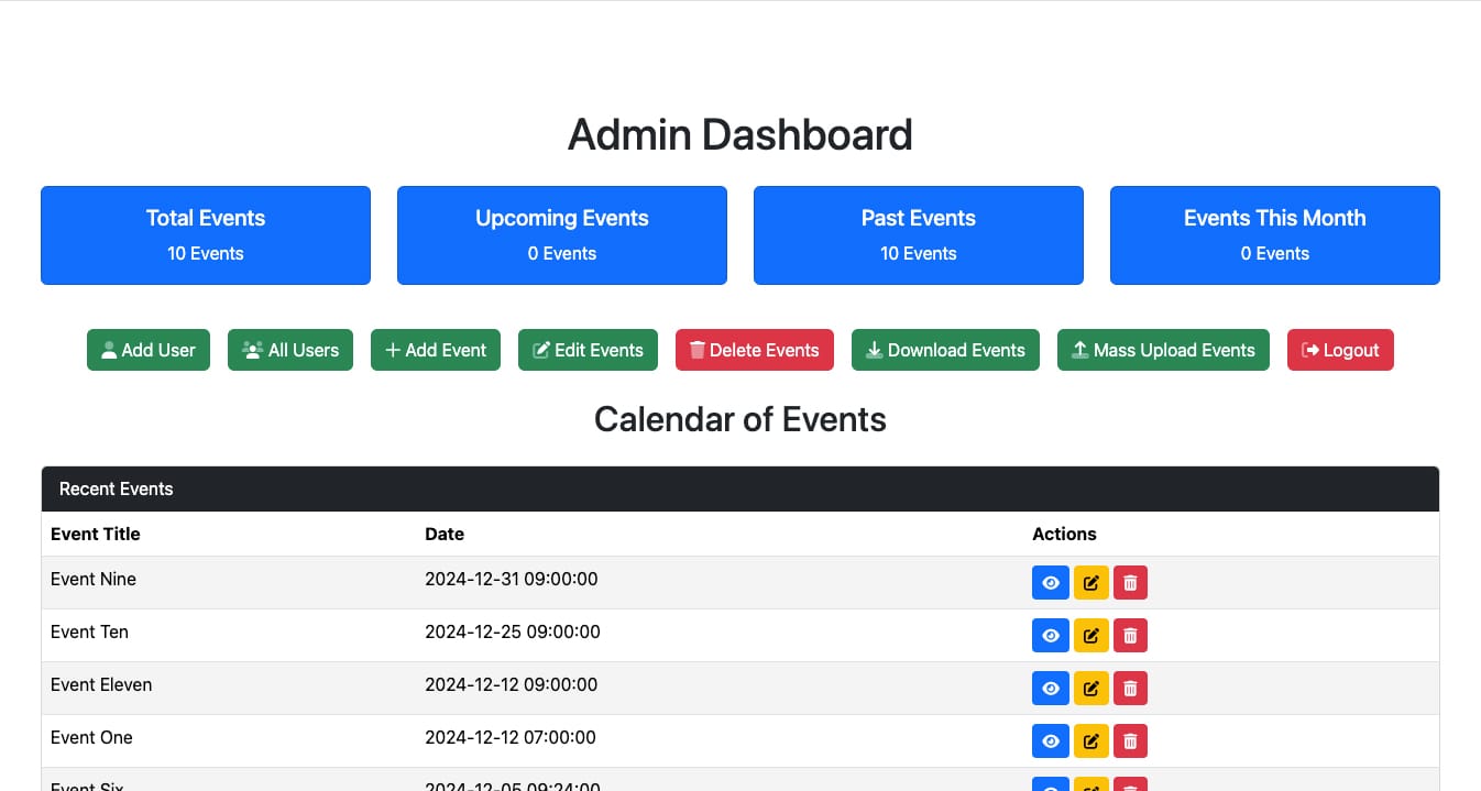 • Delete Events: Remove outdated or unnecessary events with a single click.